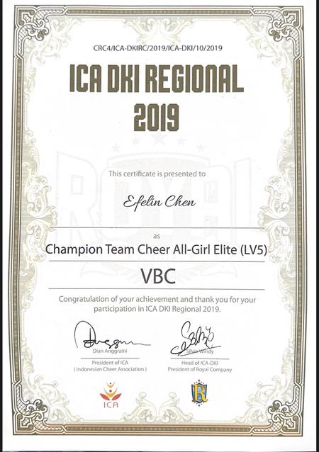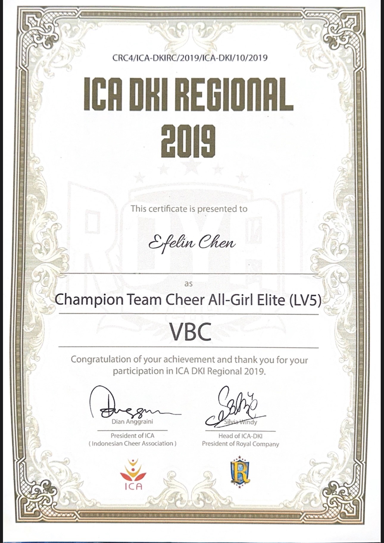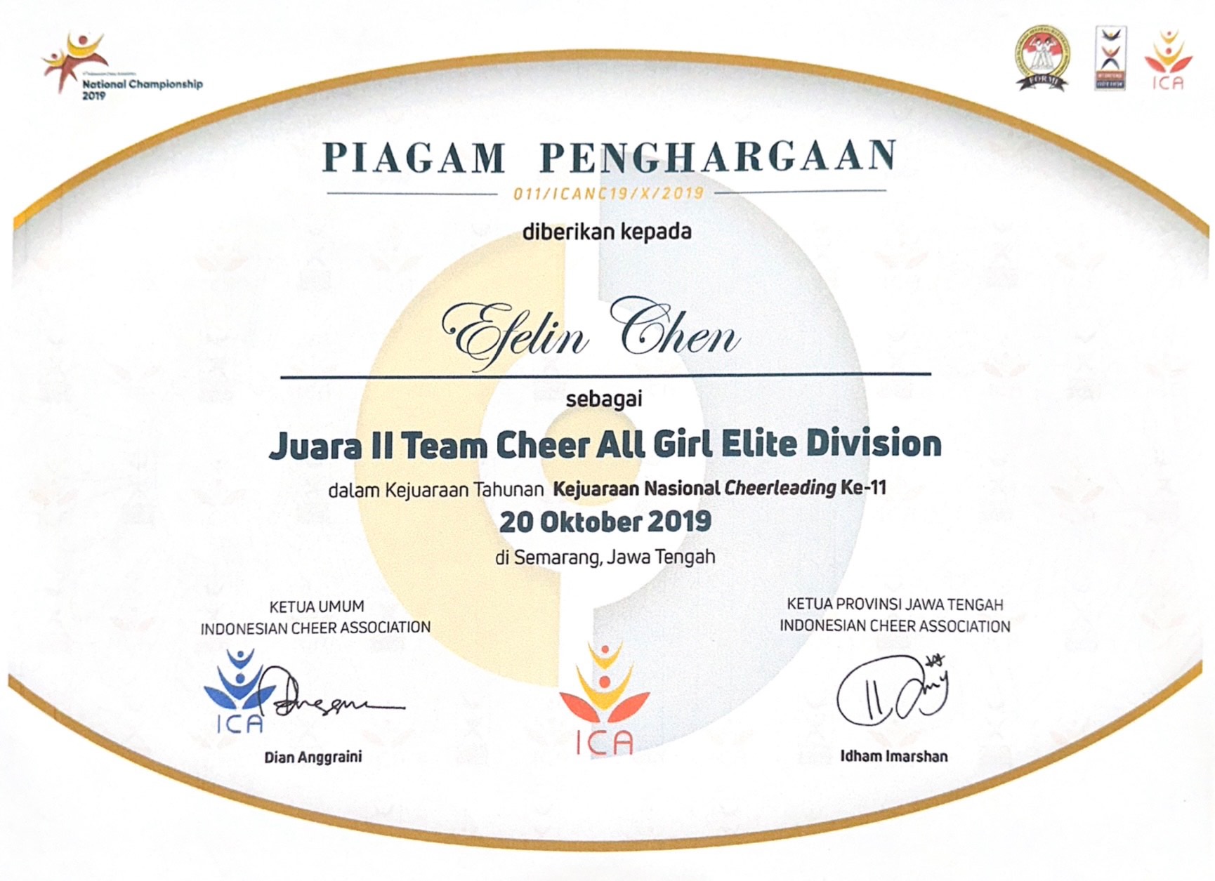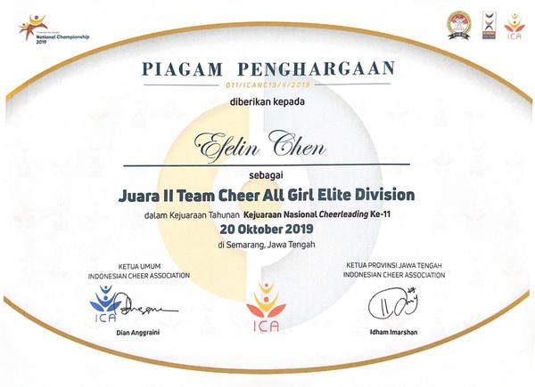 Piagam Penghargaan Lomba Cheerleading Kejuaraan Nasional