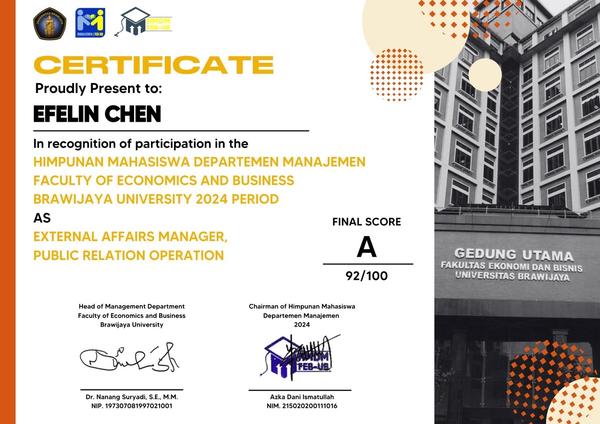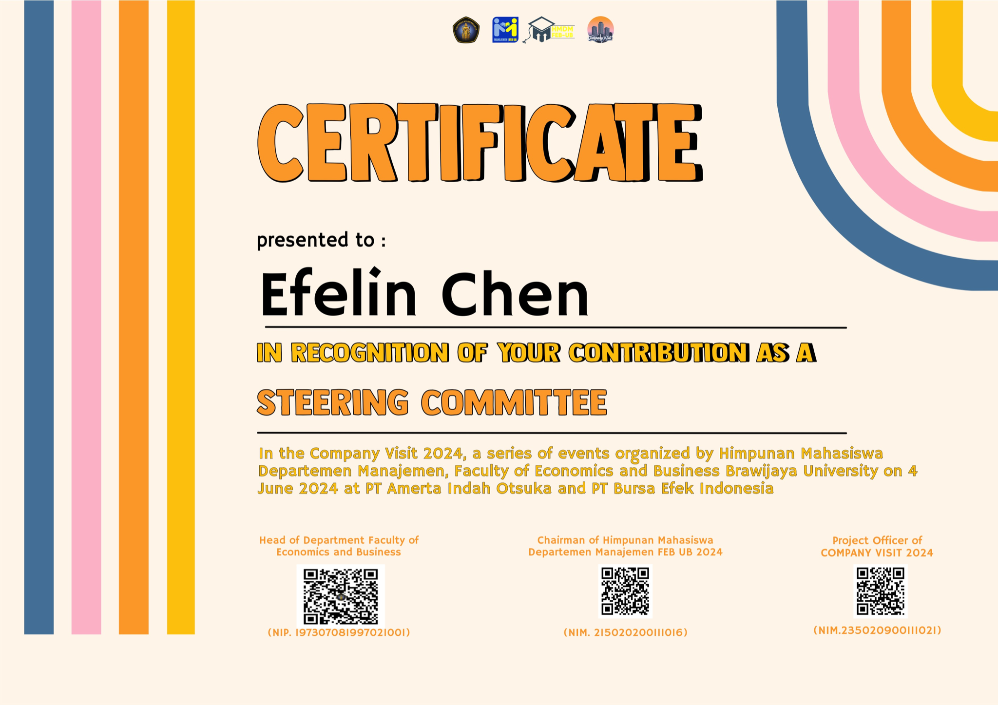Certificate as Steering Commitee of Funding Division on Company Visit 2024