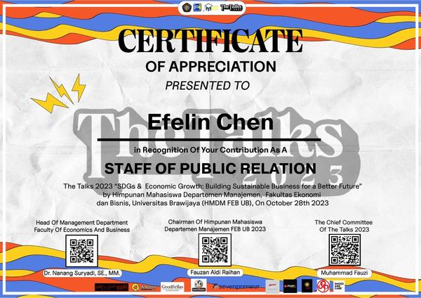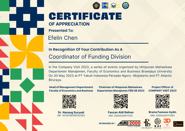 Certificate as Coordinator of Funding Division on Company Visit 2023